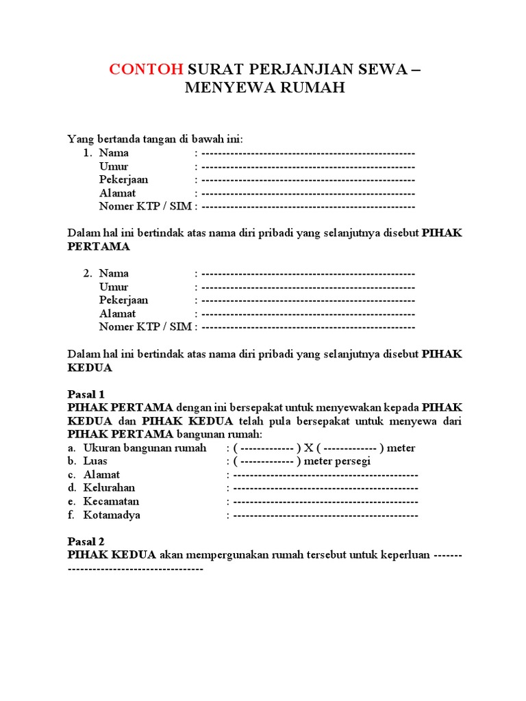 Contoh Surat Perjanjian Sewa Ruko Doc Surat Penyewaan Membaca